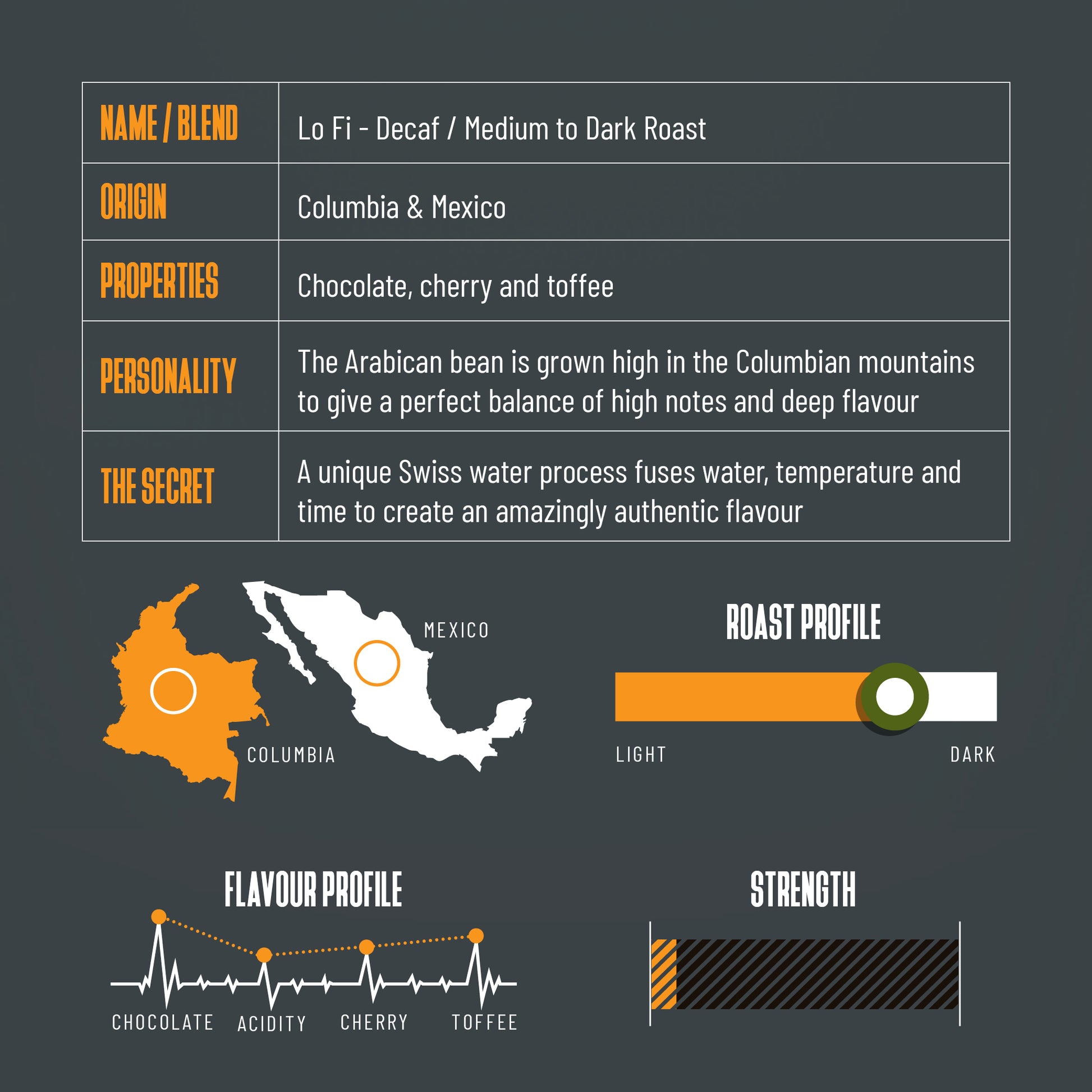 Lo-Fi is all about innocent clean fun - the definition of living care-free without the complications. This decaf coffee’s only ‘lie’ is how it fools your taste buds into thinking it’s a full caffeine cup! Mild acidic tones balanced with a full bodied flavour are extracted through the art of getting the best out of a bean without the ‘hit’. This passive little guy means you really can enjoy a cup anytime, day or night, without worry. ‘Hakuna Matata’ my friend!